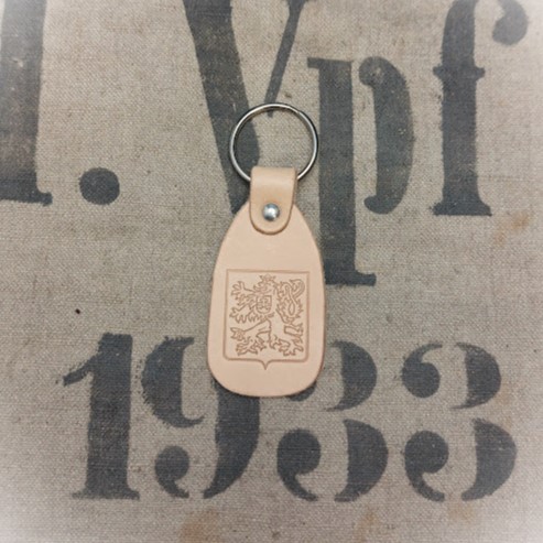 Kvalitně zpracovaný kožený přívěsek na klíče s dobovou ražbou.