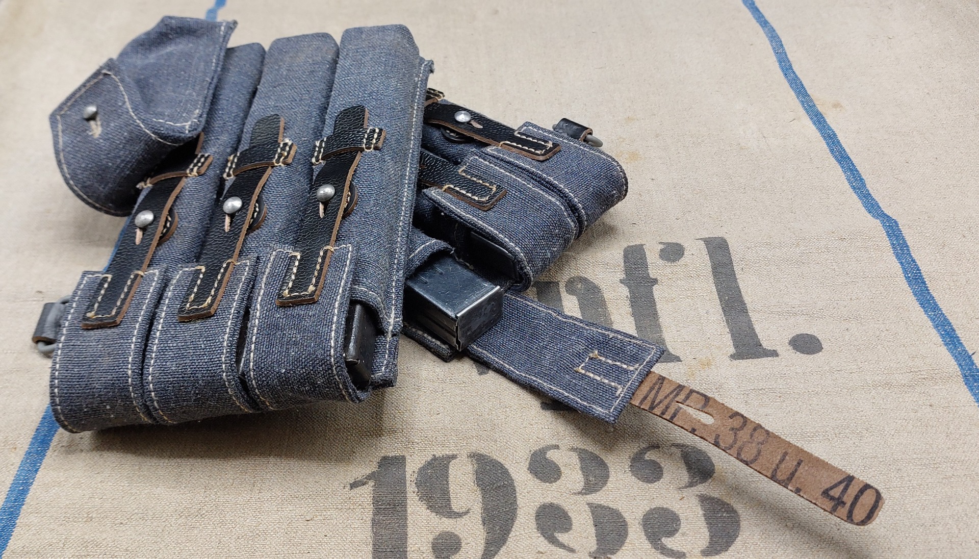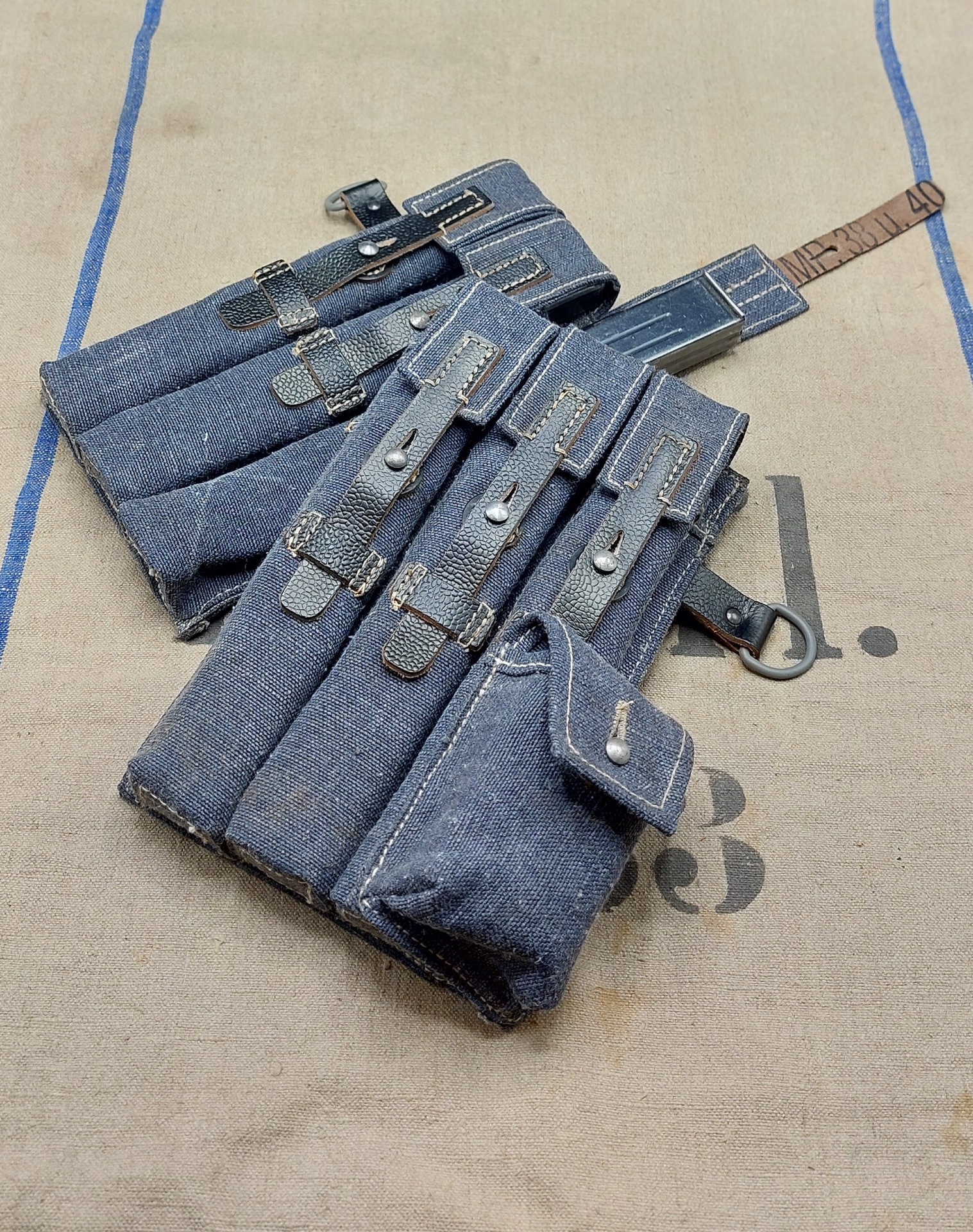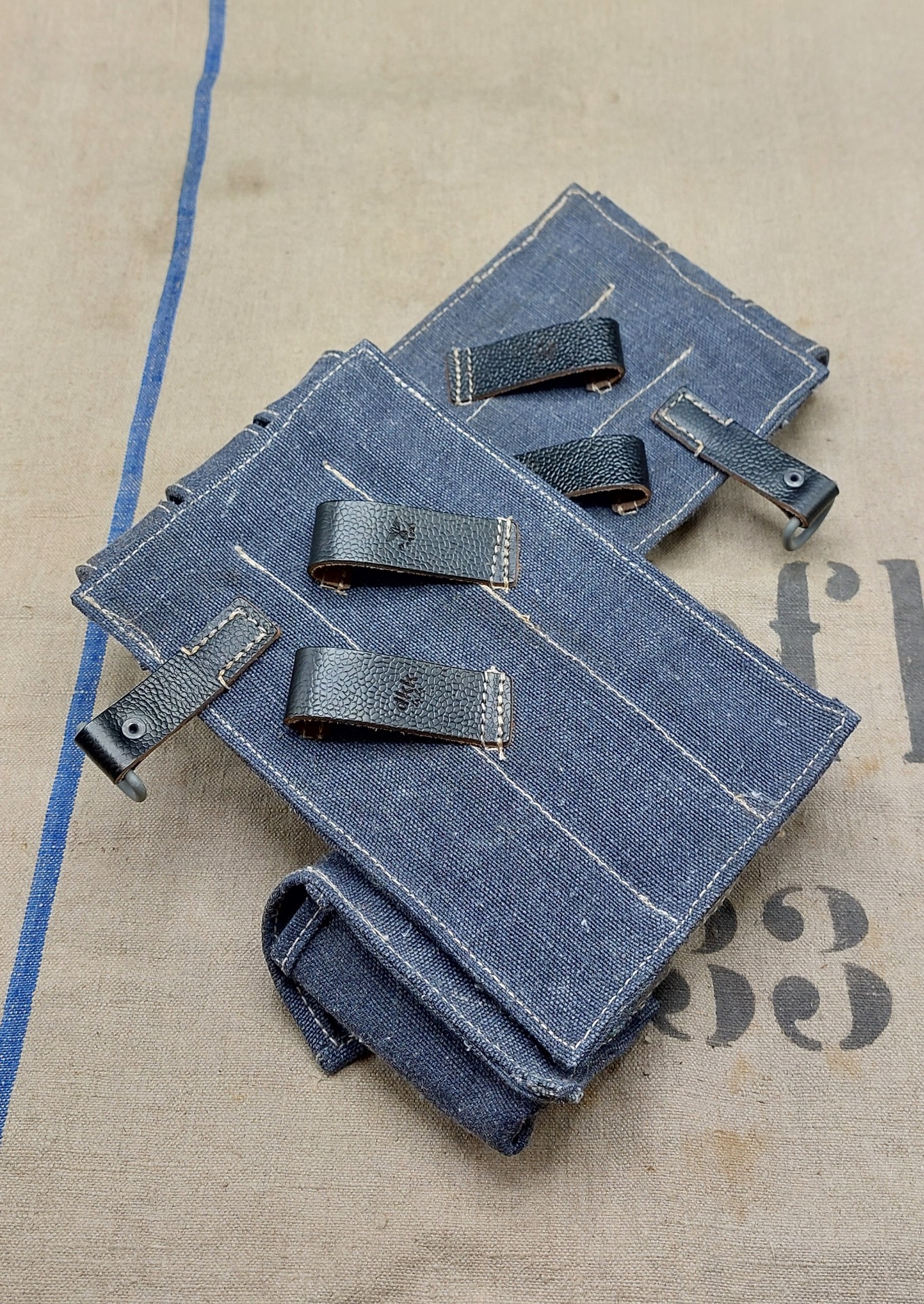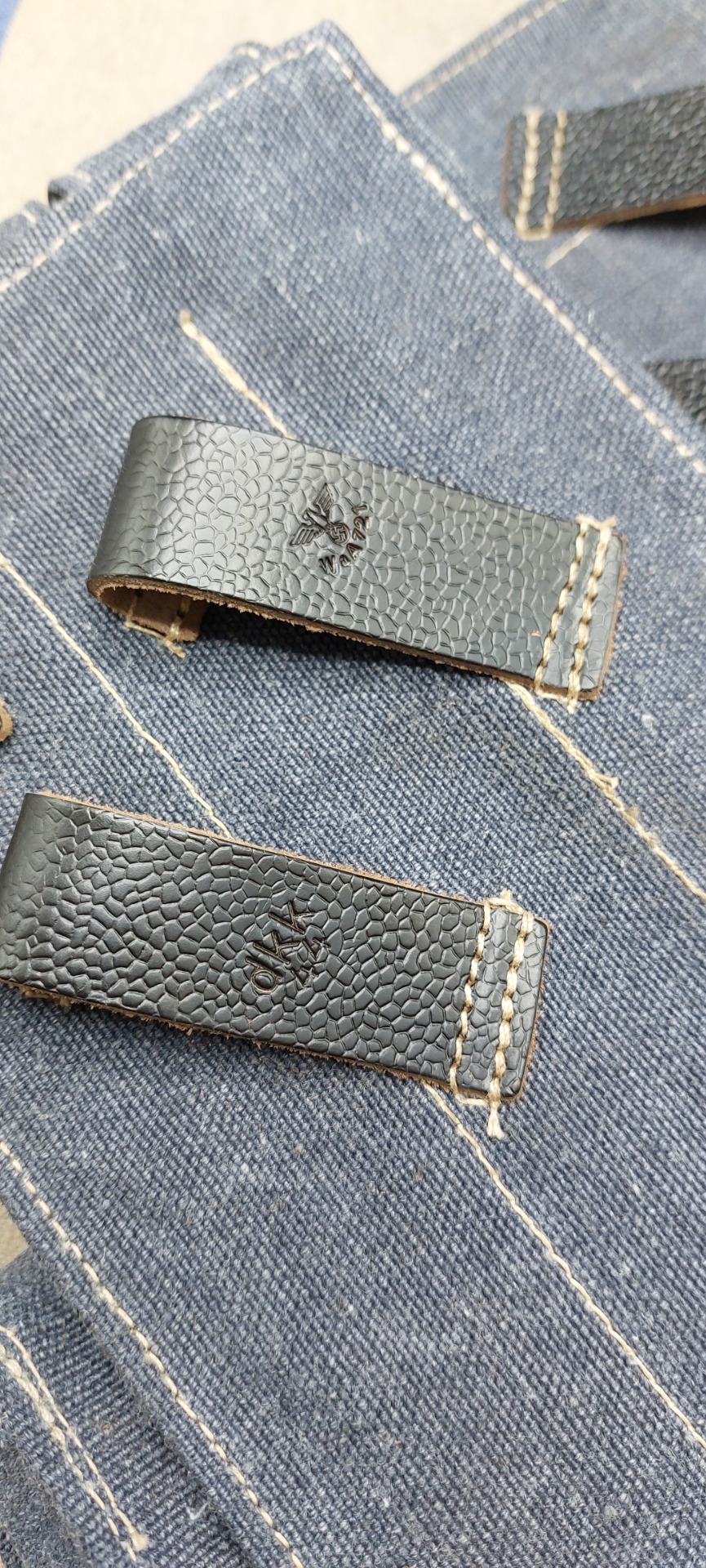 Vyrobeno z pevného modrého plátna v kombinaci s kůží.
